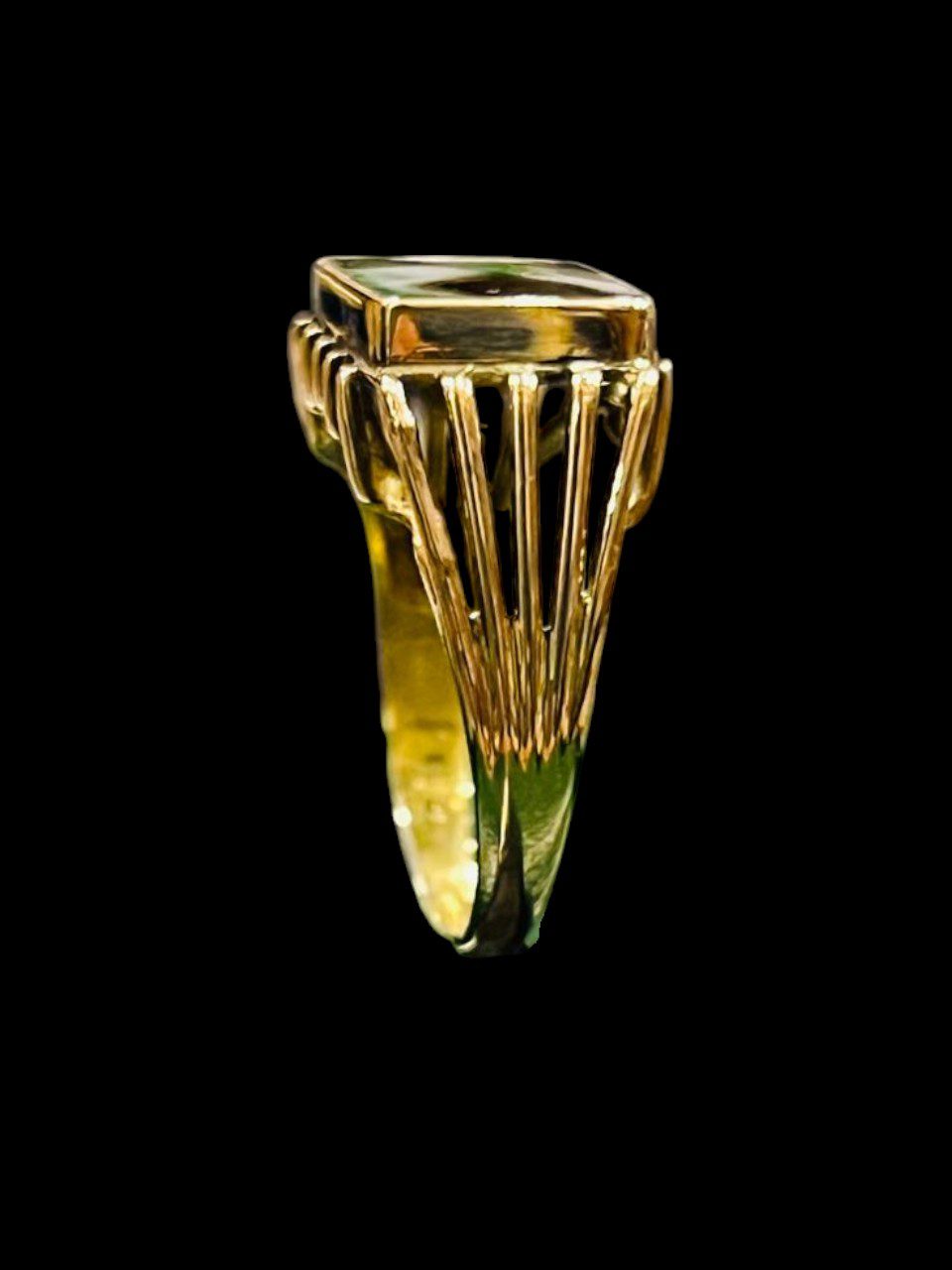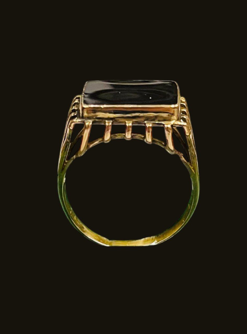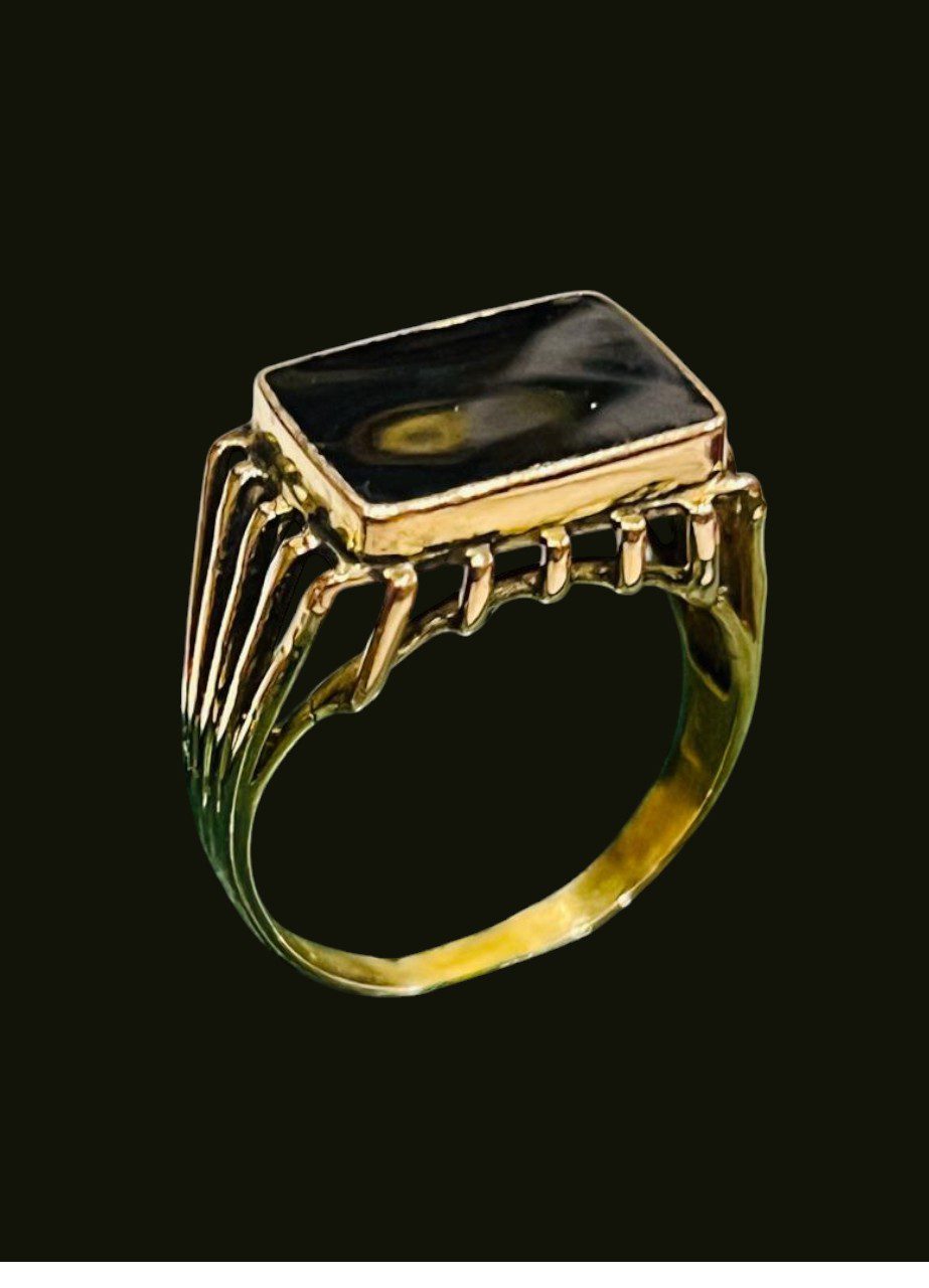 Anillo de oro 18k sellado 750 de 18 mm de diámetro interno, con superficie elevada esmaltada en color negro..