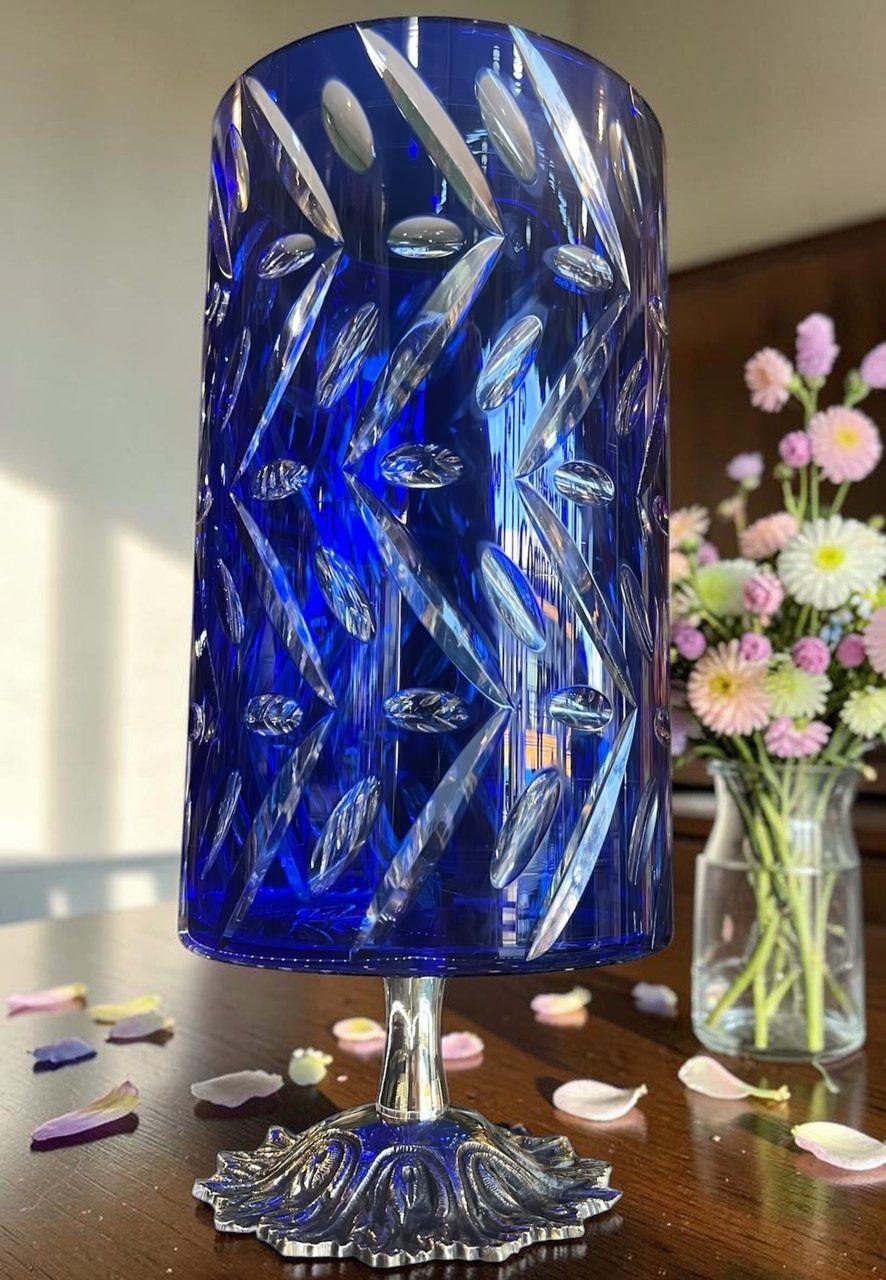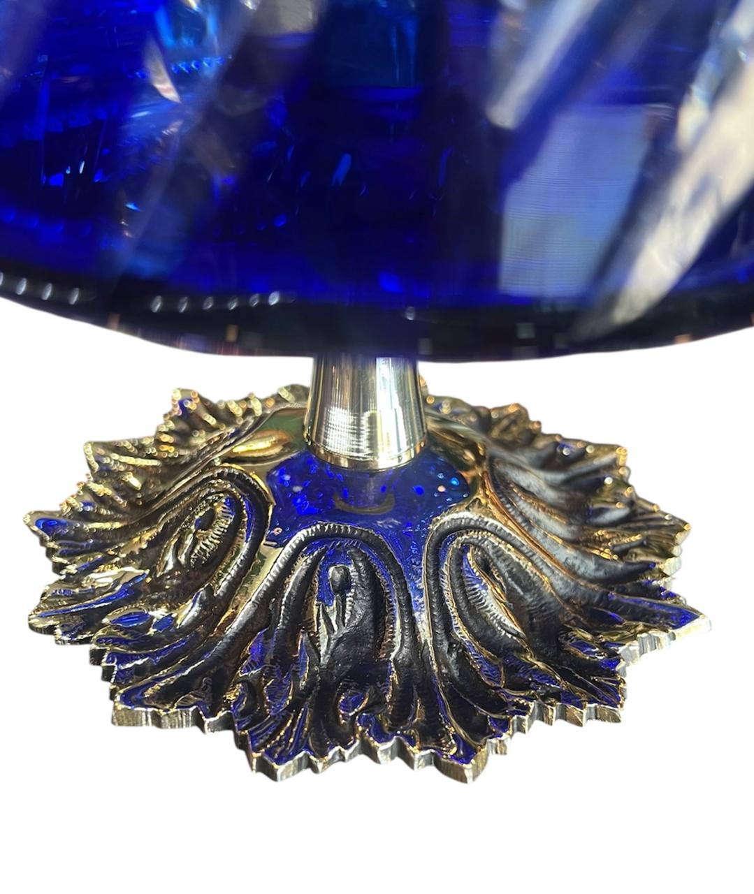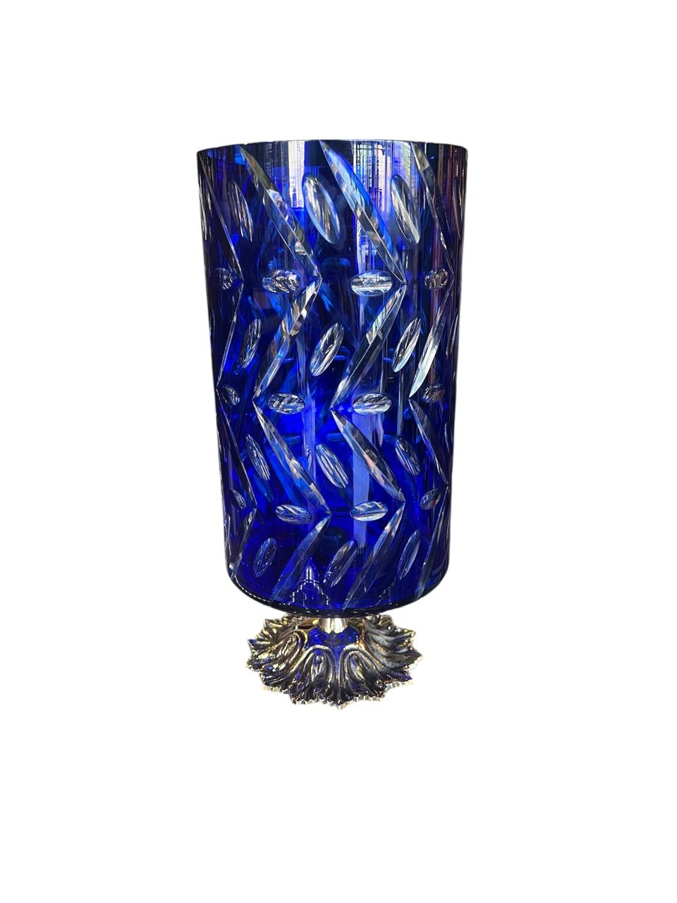 FLORERO CRISTAL AZUL Y BRONCE