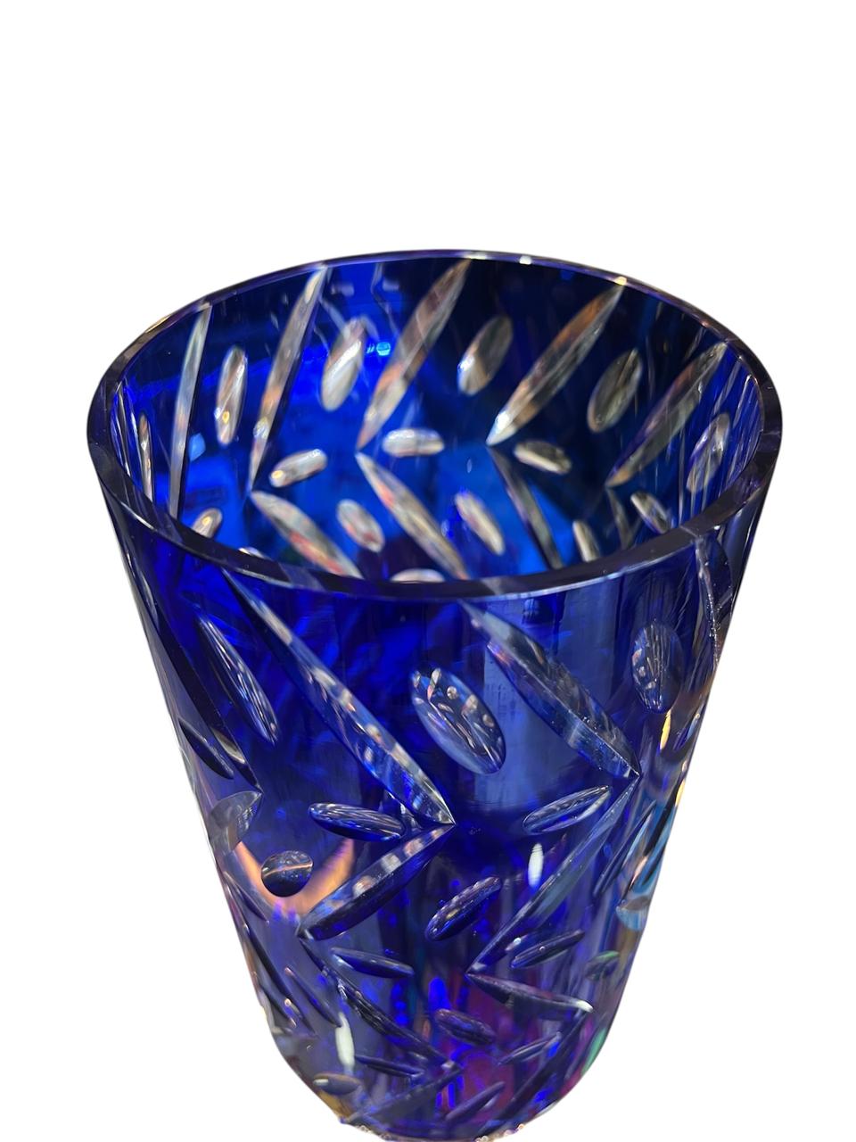 Divino florero de cristal tallado con pie de bronce, con una altura de 30 cm y una boca de 13 cm de diámetro, en perfecto estado, sin chips ni rajaduras.