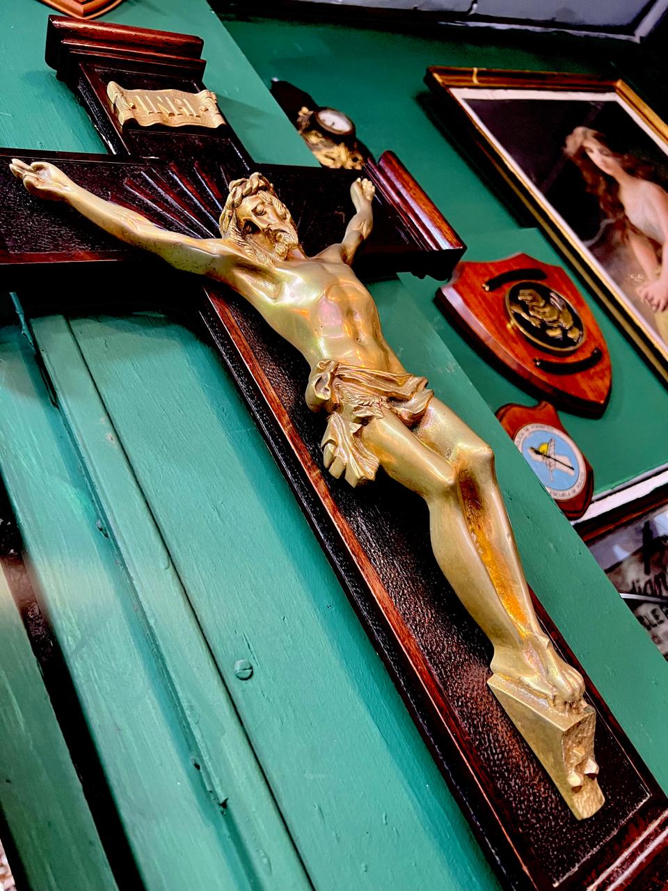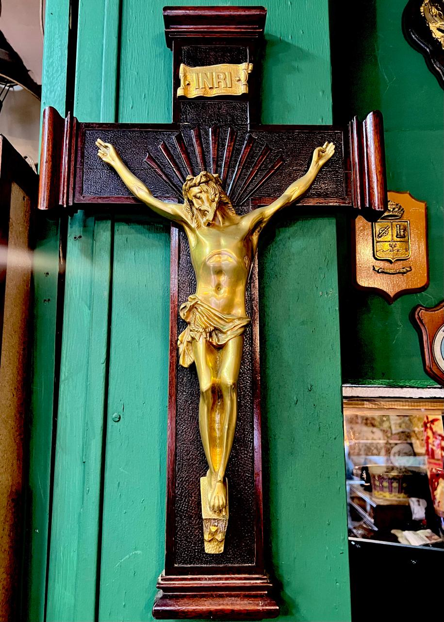 GRAN CRUCIFIJO MADERA Y JESUS DE BRONCE