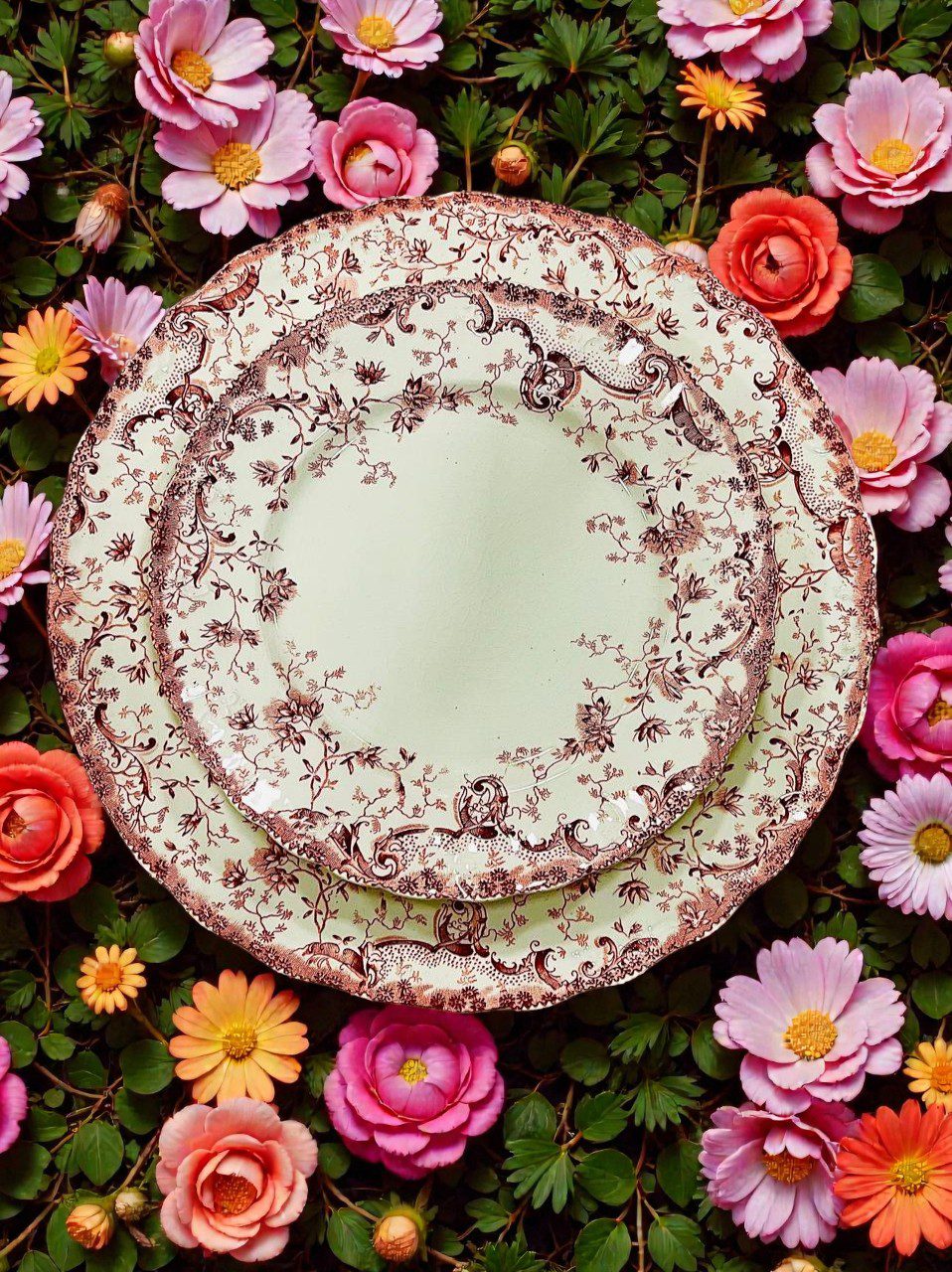 JUEGO DE POSTRE LOZA INGLESA 100 AÑOS ANTIGUEDAD