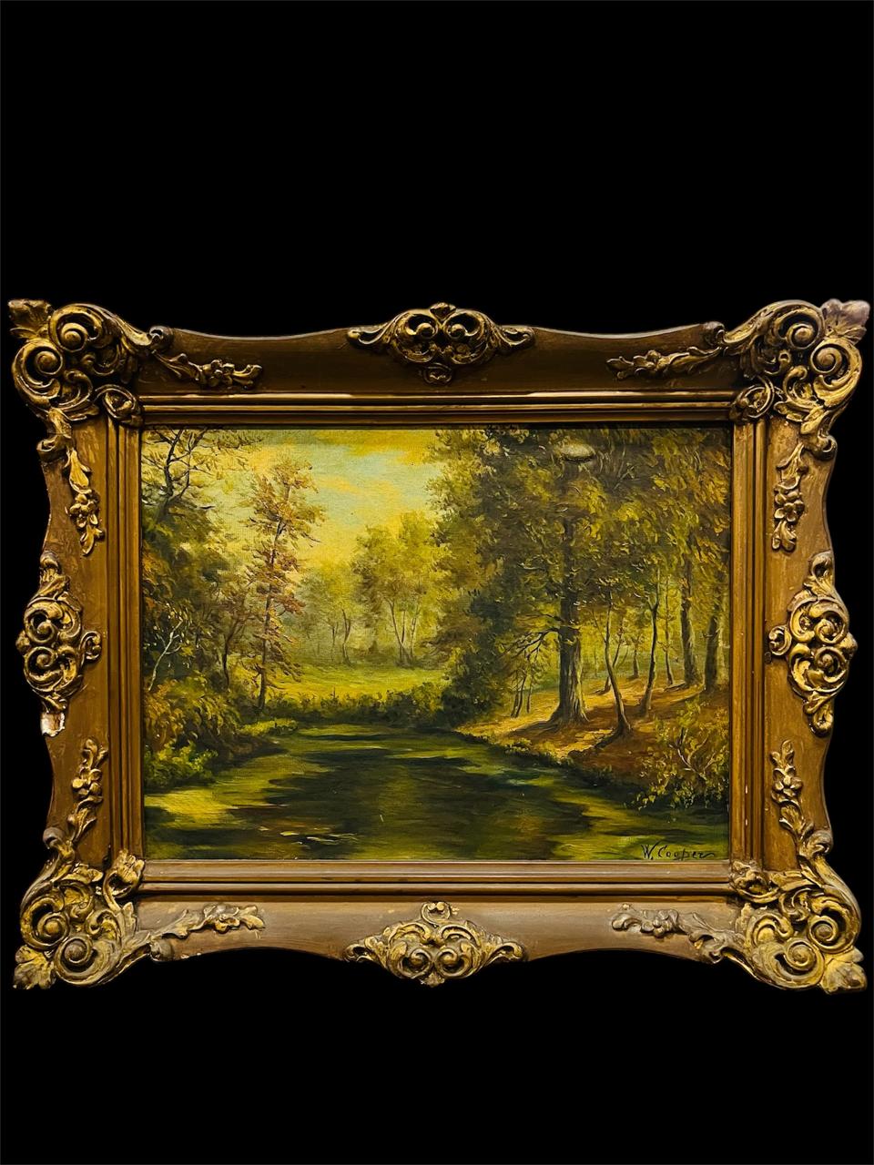 William Sidney Cooper (1854–1927) fue un paisajista británico, mejor conocido por sus pinturas del campo alrededor de Herne Bay en Kent. Esta obra en marco francés propio de su época mide en total 52 cm x 40 cm